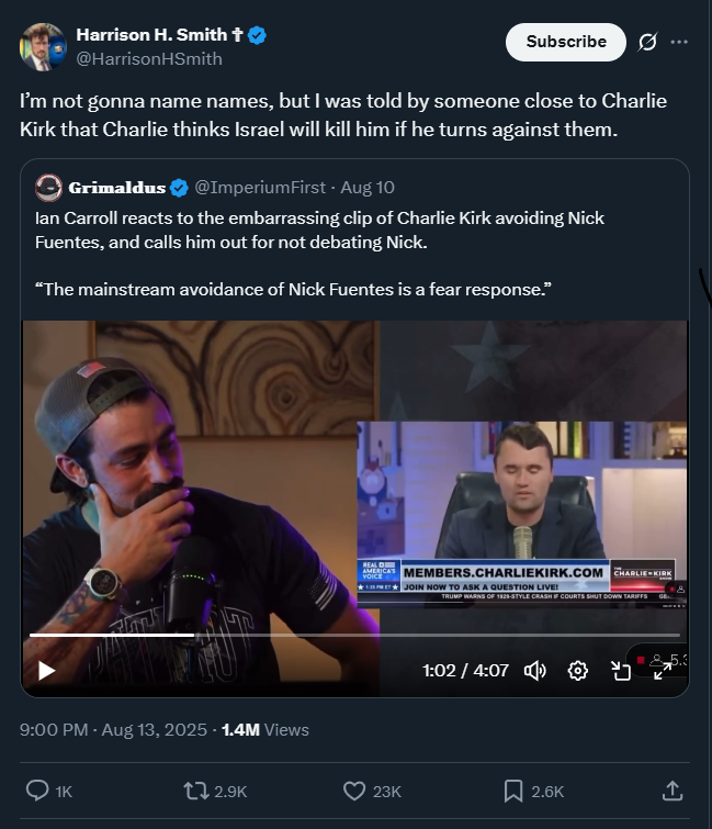 >>531462489Erika Kirk still employs Charlie Kirk's security team. Make of that what you will.