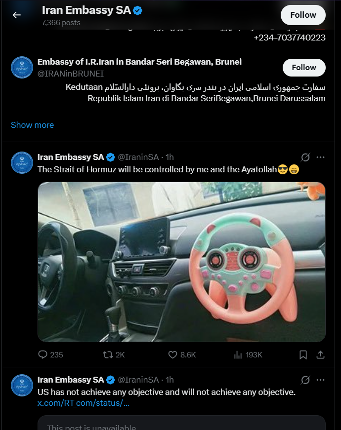 >>531461861some zoomer working at the iranian embassy in South Africa got access to the twitter account.