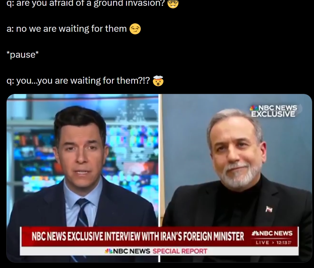 >>531453713Jesus. Iran absolutely wiping the floor with Trump in the bantz department.