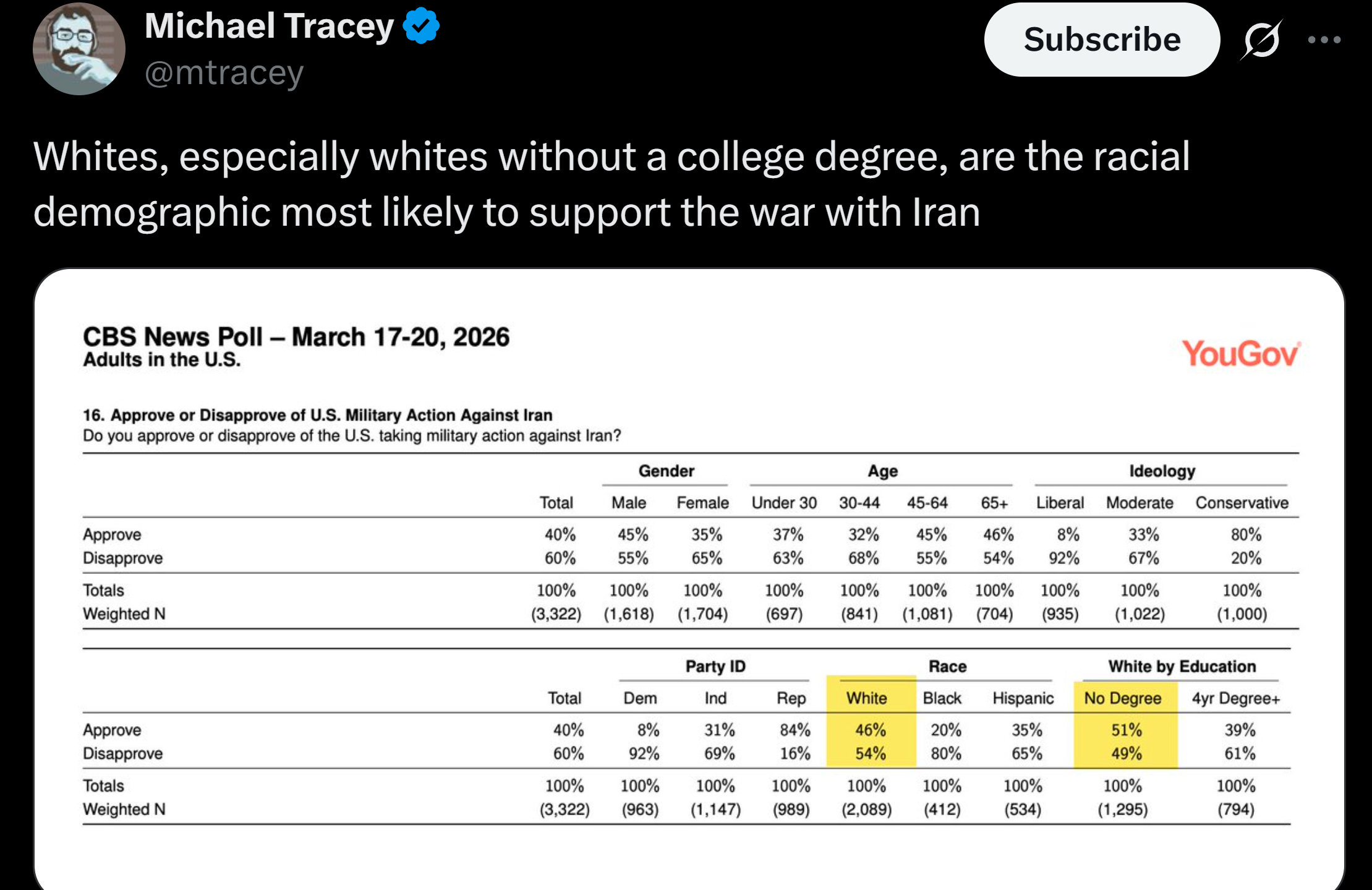 >uneducated whites support stupid wars