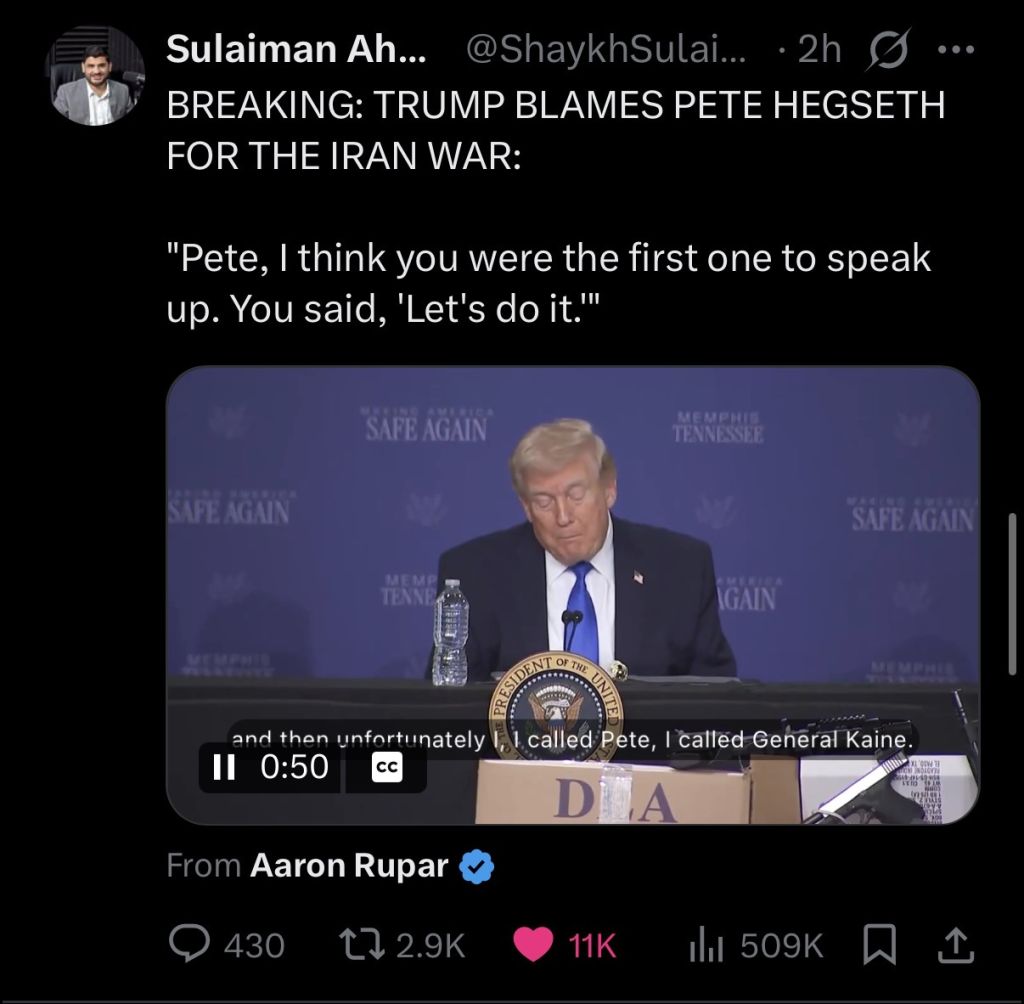 >clear signs israel is driving the conflict while the US is paying for it (militarily, economically, reputationally)