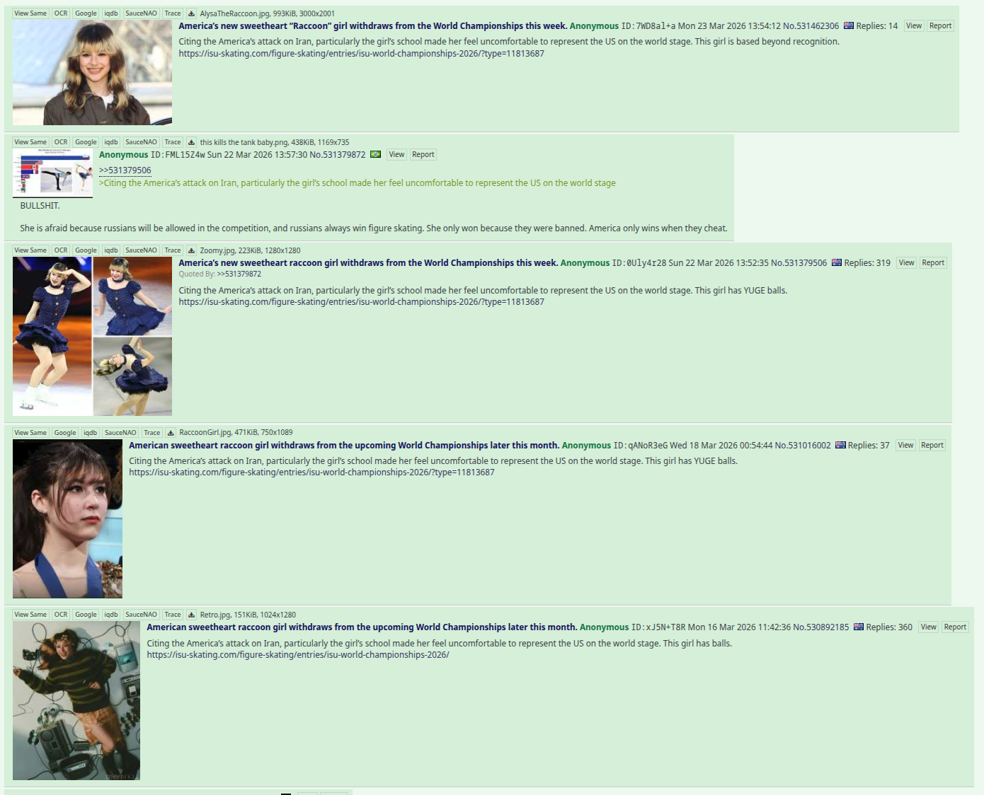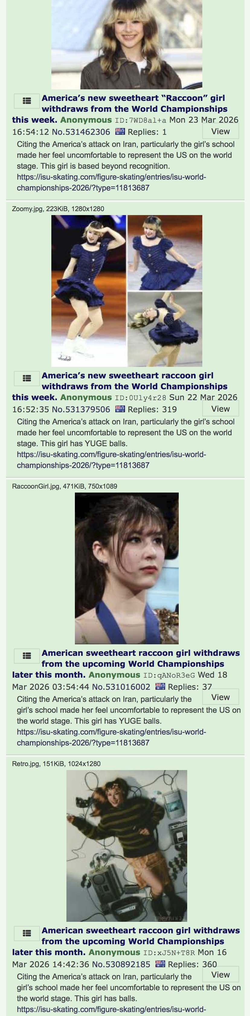 Citing the America’s attack on Iran, particularly the girl’s school made her feel uncomfortable to represent the US on the world stage. This girl is based beyond recognition.https://isu-skating.com/figure-skating/entries/isu-world-championships-2026/?type=11813687