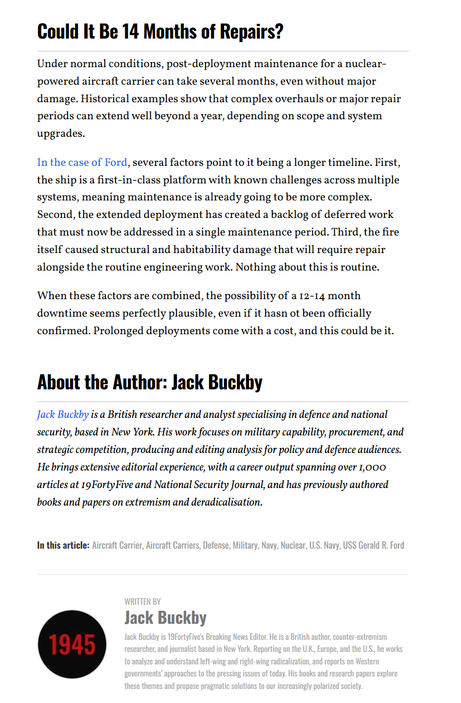 >>531478147>That still wouldn't put a ship out of action for 14 months. Nigga you just clean it up and repaint shit. Something bad happened hereNO. Standard maintenance is like 8 months anyway. And they did a double long deployment which makes the maintenance super extra long.So it already would have been more than a year in maintenance even without the huge fire.14 months isn't even accurate, btw. It's going to be 2 years easy.