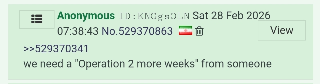 >>531475486He already TACO'd, now it's in 5 days and everyone knows it's when the soldiers will get there so Iran is just going to spend the next 5 days getting ready for it if he doesn't just TACO again when the navy will refuse to suicide themselves over there