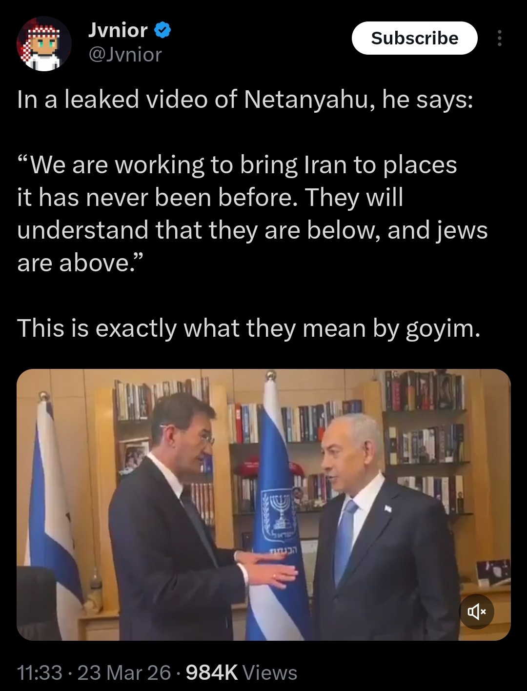 that's just false. Netanyahu is dead, remember?