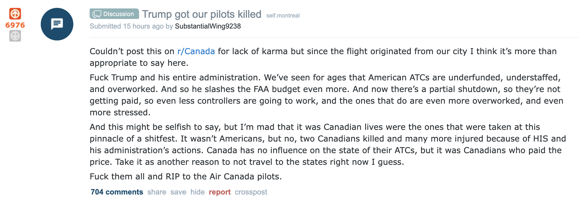 MONTREAL DECLARES WAR ON TRUMP OVER PILOT DEATHS.