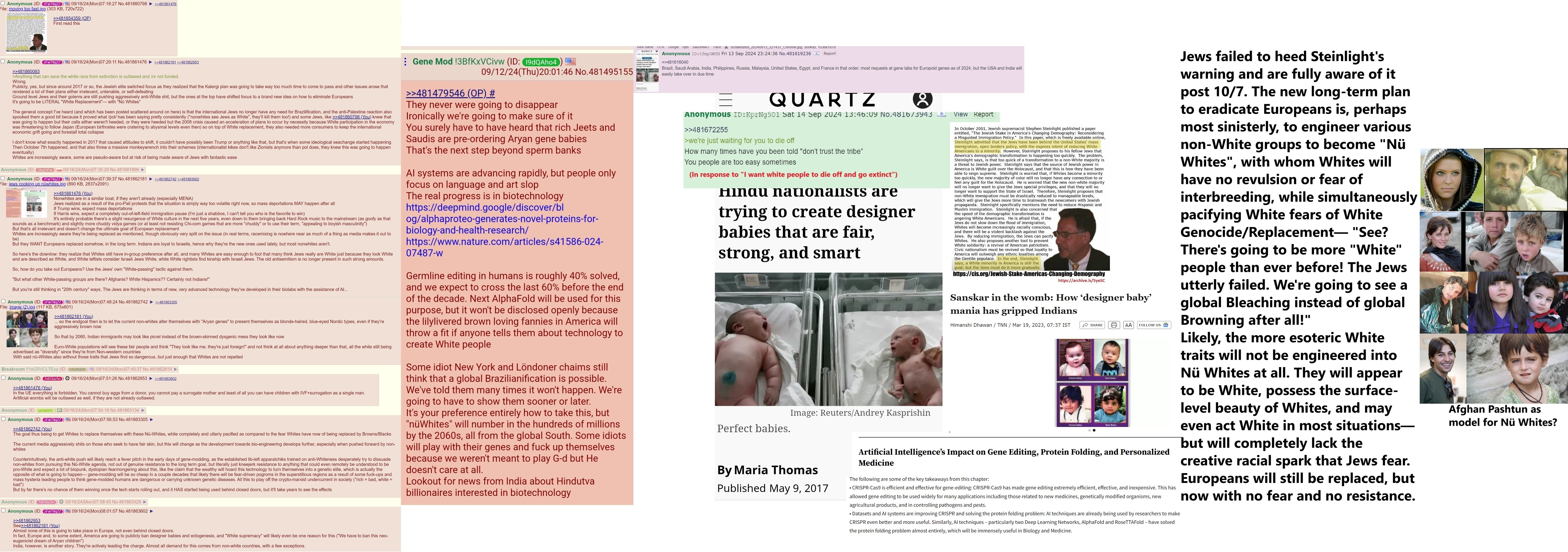 >>531490479>>531489979In the coming years there's going to be a rather brilliantly insidious plan to replace Europeans for good using Indian which is why they're flooding the West They're going to normalize "Indians are the same as whites but browner"In an anthropological sense this isn't totally false. Indians and Europeans do indeed share a common Neolithic ancestor race, but split off. The more Indians take over governance and finance, the less the narrative about White supremacy will hold up once niggers and spics begin noticing that their renters and bosses and police captains are HindusSo to keep the rage aimed at Europeans, they will begin promoting "Indo-European Identity" to claim that Indians are not as separate as claimed Hindu angst over Whites will be forcibly suppressed and instead they'll be pushed to celebrate White integration and looking and acting White As we speak, bio-tech is being used to genetically modify babies to activate pale skin genes for various test subjects and billionaires The White beautification industry is under stress because of BIPOC agitprop reviling pale skin except as a negative trait but when Indians take more prominence, this will sharply reverse "White Indians" will become a new topic of discussion Eventually pale skinned Indians will be in such large numbers that European hesitance to breed with them will fade Simultaneously they will be susceptible to White Guilt. "White supremacy" will be extended to Hindutva and Indian """excellence""" By this point there will be virtually no remaining true European youth left, and the older generations will be dying out, but they will not think they've died because a billion Indians will have become "White" so it will seem that White civilization has been savedIn truth it is the death of Western White civilization, subjugated by Hindu, Jewish, Sinic, and ultimately AI interests In practice they will barely be at Eastern European levels of creativity and intelligence