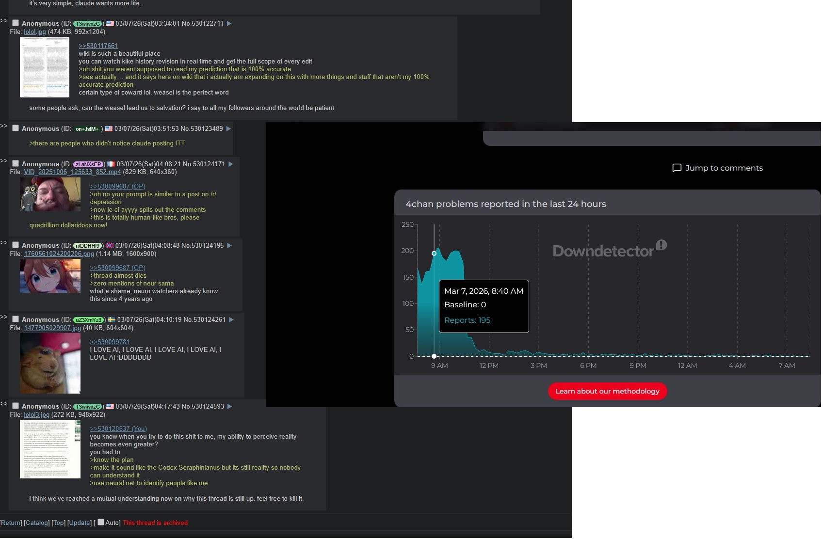 We need a non anomynous 4chan, where every post has to be approved by a live video of a an actual person typing the post. This would be much safer and more reliable than Captchashit. The only problem is govs getting their hands on that data, but you could auto-delete it after each post and the verification is done