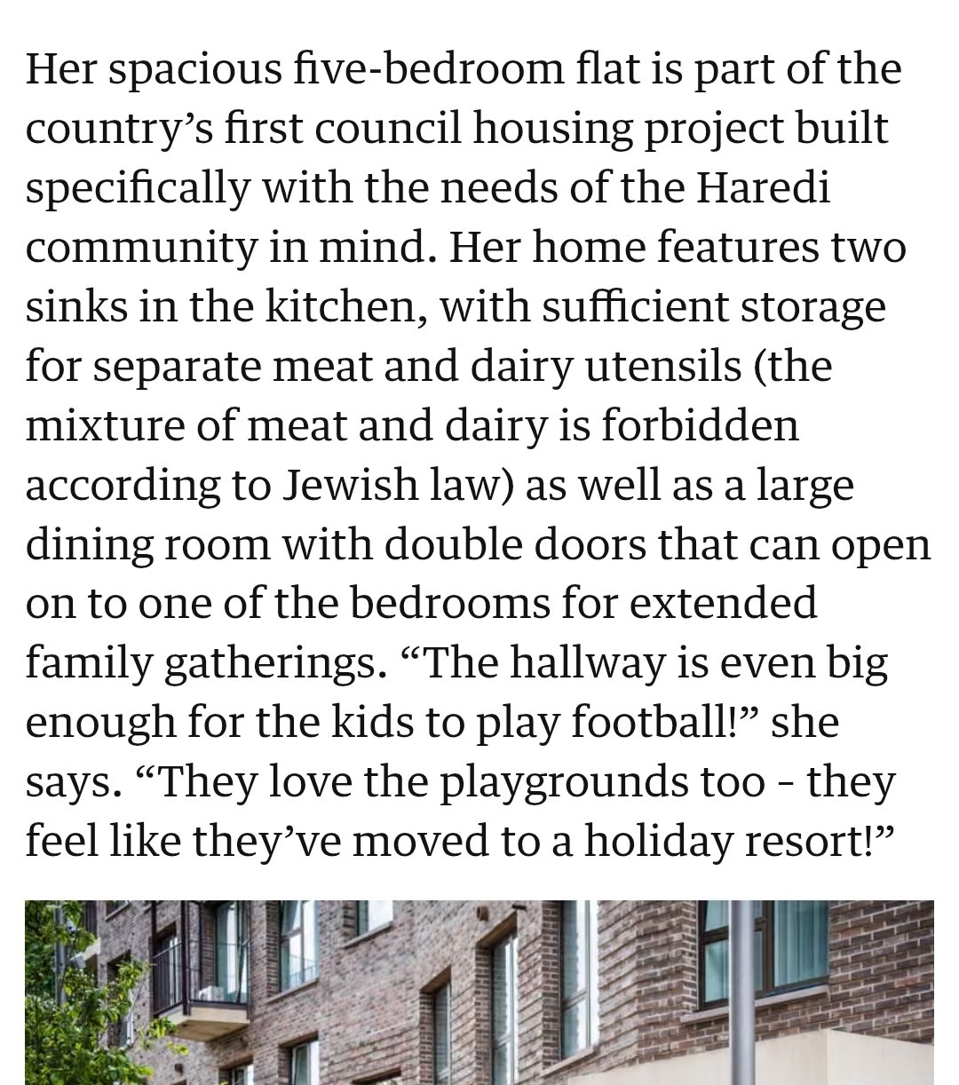 >Jewish council housing is a five bedroom flatFuuucking hell what a country we arehttps://www.theguardian.com/artanddesign/2025/sep/11/council-housing-tower-court-haredi-jewish