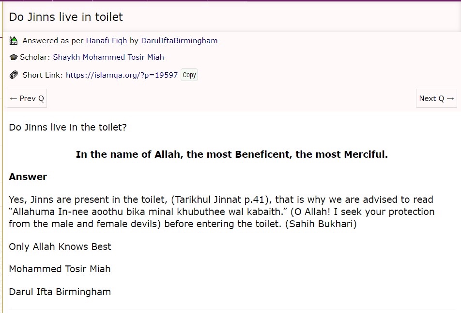 >>531530231Islam also thinks there's a genie living in your bog