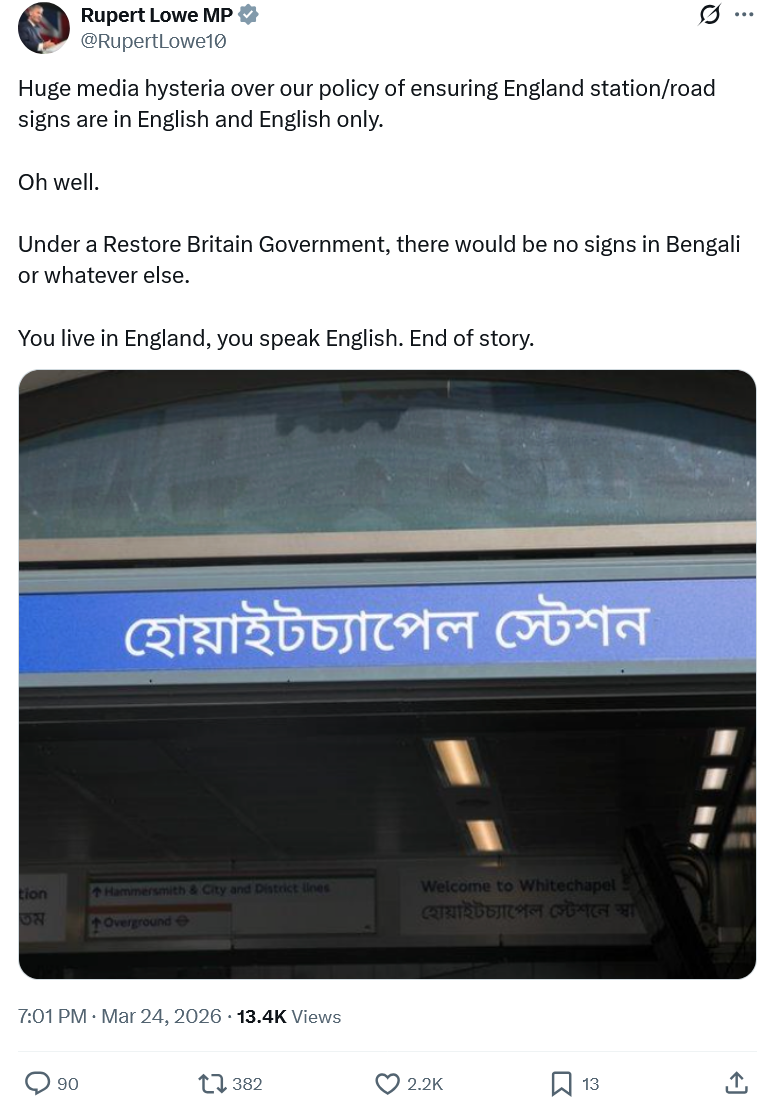 https://xcancel.com/ShabanaMahmood/status/2036456569362108830#m>It was a pleasure to celebrate Eid at 10 Downing Street yesterday. >And it was a moment to remind those who might think otherwise: British Muslims are an essential part of our country's national life. >Unity, not division."essential"