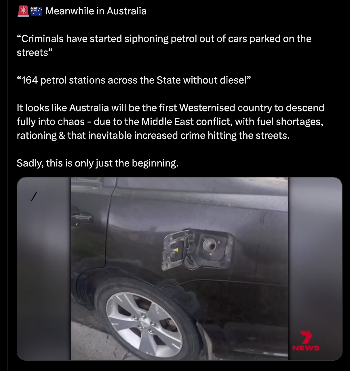 I told you lads a few weeks back to keep your tanks topped up, you said it was nothing, this will come here soon.Prices high are one thing, not getting it at all is another. This is your last chanceIf I see any of you siphoning fuel out of my car i'm going to fucking batter you