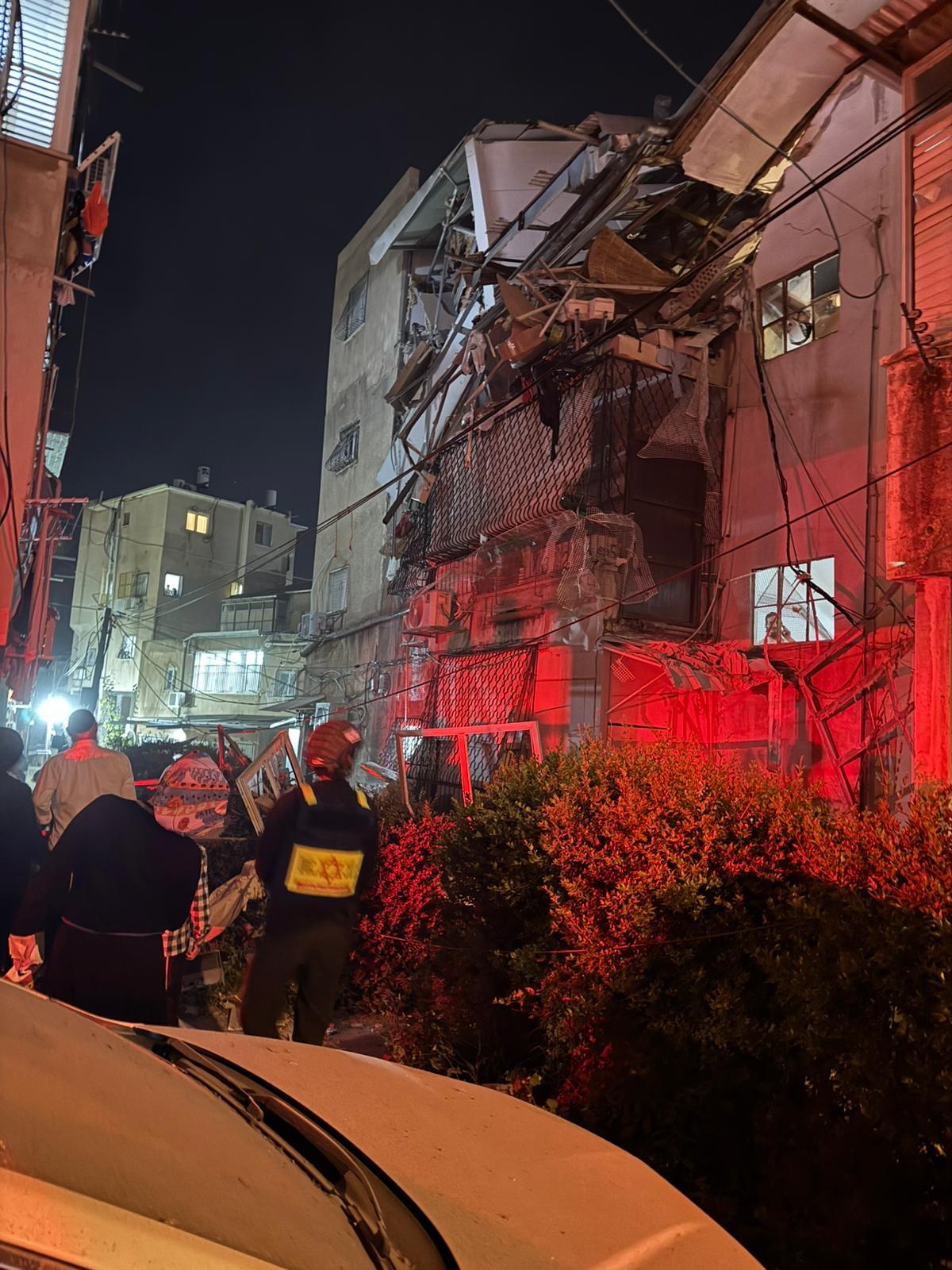 Scenes from one of the Iranian missile strikes on Tel Aviv