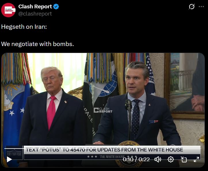 >Hegseth on Iran:>>We negotiate with bombs.lol