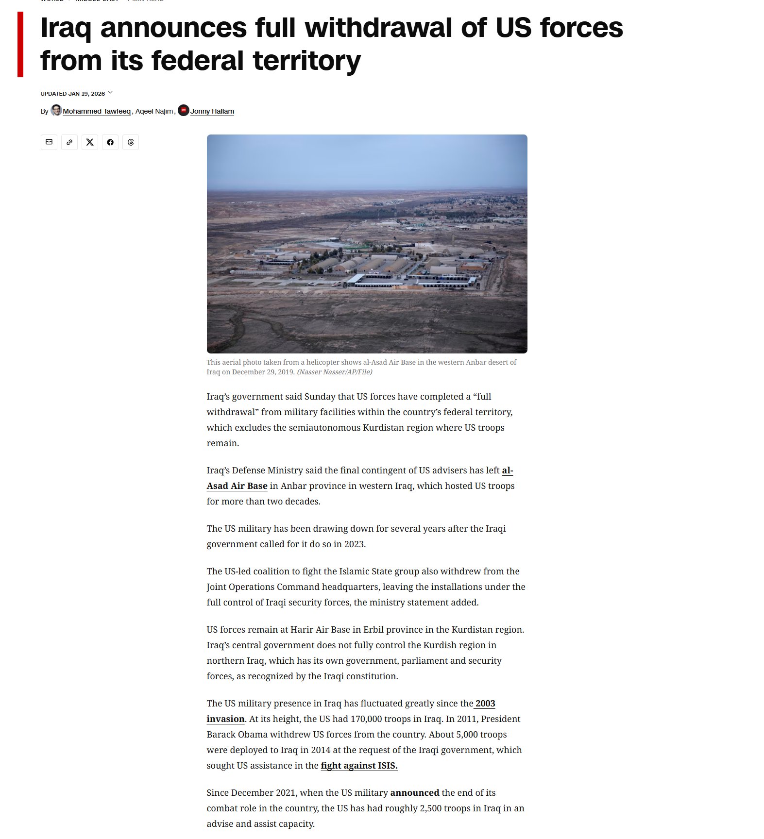 I honestly am hoping someone deboonks the idea that we lost iraq and abandoned all our bases. The schadenfreude and catharsis would be too strong if it were true, I'd have develop a grand mal seizure, serotonin syndrome, and type 2 diabetes instantly. Surely that convoy wasn't literally all of our forces heading to jordan?
