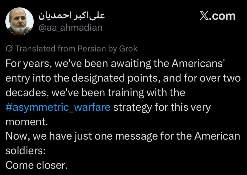 >>531529882Why is this retard stealing Iranin jokes? https://x.com/IRTruePromise/status/2036048147554718166