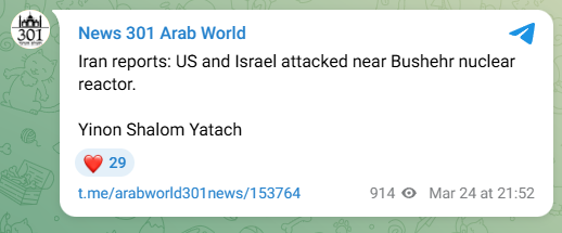 Iranian media: America and Israel attacked today the vicinity of the Bushehr nuclear facility