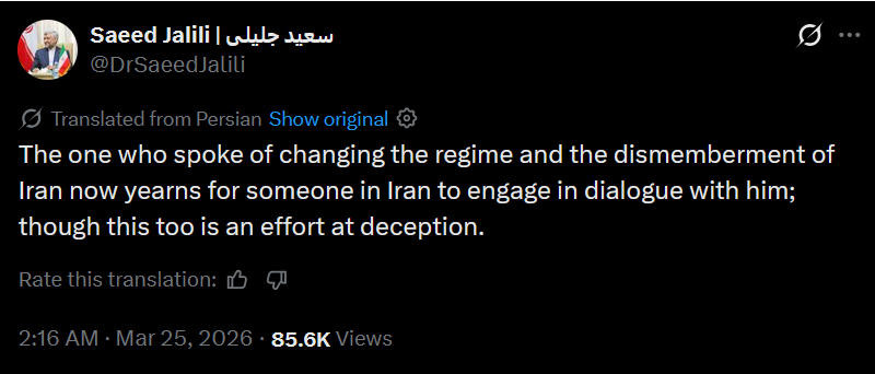 >MB Ghalibaf: No negotiations have been held with the US, and fakenews is used to manipulate the financial and oil markets and escape the quagmire in which the US and Israel are trapped.