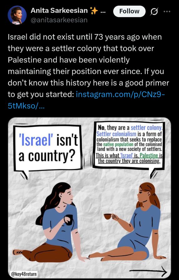 >>531544806it isn't that deep. they are just two dumb, liberal sluts, and the unexamined liberal position on israel is to denounce it as such. they think israel is another arm of white settler colonialism and "western civilisation" because they don't know anything at all.