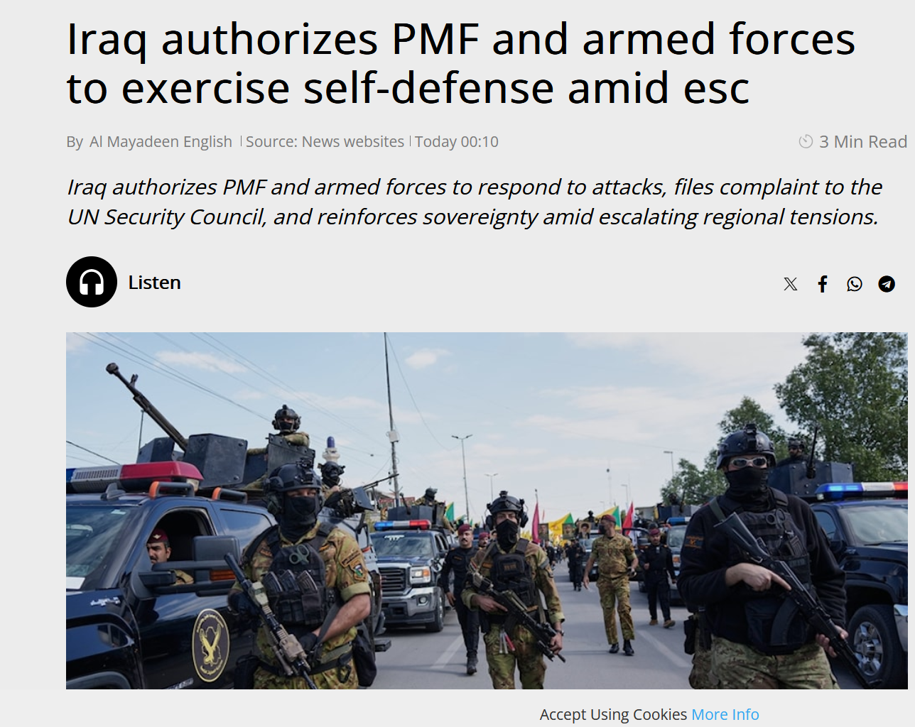 > Iraq has green-lighted 250,000 Paramilitary Forces under the Popular Mobilization Forces to fully respond and retaliate against strikes by the United States24th day of the 24 hour special military operation: a quarter of a million Iraqi troops join the fight