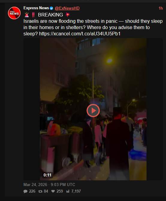 Previous >>531541488Timeline:▶ Day 25>▶ Day 24>Trump says Iran delivered major oil and gas “present” as talks progress>Iranian ballistic missile impacts just off the shore of Beirut>NYT: Saudi crown prince urges Trump to continue war on Iran to reshape the Middle East(now denied on al arabiya publicly)>Katz: The IDF will control the security buffer zone up to the Litani>Tit for tat exchange begins after Israel strikes Iranian energy infrastructure▶chink AI slop is now kinobrown people say so ▶Livestreamshttps://www.youtube.com/watch?v=4E-iFtUM2kkhttps://www.youtube.com/watch?v=JHwwZRH2wz8▶Telegramhttps://rentry.org/tgnews▶Twitter accountshttps://nitter.net/clashreporthttps://nitter.net/FaytuksNetworkhttps://nitter.net/sentdefender▶Israel Rocket Alertshttps://www.tzevaadom.co.il/en/▶Air Traffichttps://www.flightradar24.com/https://flightaware.com/livehttps://globe.adsbexchange.com▶Maritime Traffichttps://www.marinetraffic.com/