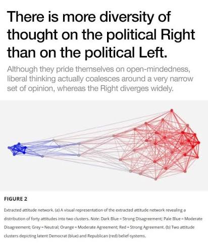 >>531558762>>531558845It's due to two factors: A, the political trichotomy, and B collectivism.Looking at voting blocks, there are two rights, libertarian right and authoritarian right, but libertarian left doesn't actually exist and cannot exist on a national scale.Since leftism is inherently collectivist, they always seek a consensus and punish concensus-breakers, which leads to little diversity of thought.