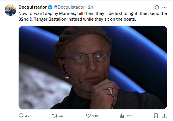 >>531564075>As for a ground invasion, your assessment would make sense in an attrition scenario but I think that's gotta be the US's worst nightmare and therefore last resort from both a political and military perspectivethe only thing that makes sense to me is a limited invasion, only taking the coastline and (sea-facing side of the) mountains. the idea being to prevent drone missile launches from there, take the new iranian toll booth in the straight, maybe set up some gps jammers or anti drone defenses to protect the straitdefinitely not a full on "lets take the whole country" kind of invasion