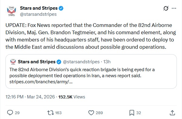 3,000 from the 82nd Airborne being deployed, "not a war though"