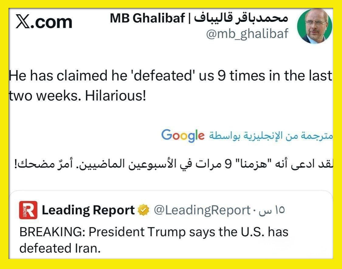 >Iran responds on the Negotiations allegations:>"You have reached a stage where you are negotiating with yourselves">The spokesperson of the Central Khatem-al-Anbia Headquarters addressed the US, saying: Do not call your defeat an agreement>There will be no news of your investments in the region, and you will not see the former price of energy and oil.>We explicitly declare:>Until our will exists, no situation will return to the previous state; this will is created when the thought of action against the Iranian nation is completely erased from your filthy minds.>Our first and last word has been, is, and will be from day one:>No one like us will come to terms with anyone like you. Not now, and never.