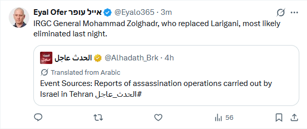 >>531568422He only likes Isn'treal because it's bombing the IRGC. He already said that it doesn't ultimately matter who Isn'treal or the US allow to be the interim leader of Iran, because he's a monarchist whose dad is still in Iran and wants the mullahs gone. If Isn'treal shits on the Shah guy, Tousi would stab Isn'treal in the back without flinching. He, like the rest of the Iranian monarchists, just have allies of convenience to help pursue their aims. But yes, he does have the best explosion coverage and never wavered in supporting Trump even when other Iranian accounts thought Trump had backed down in January.