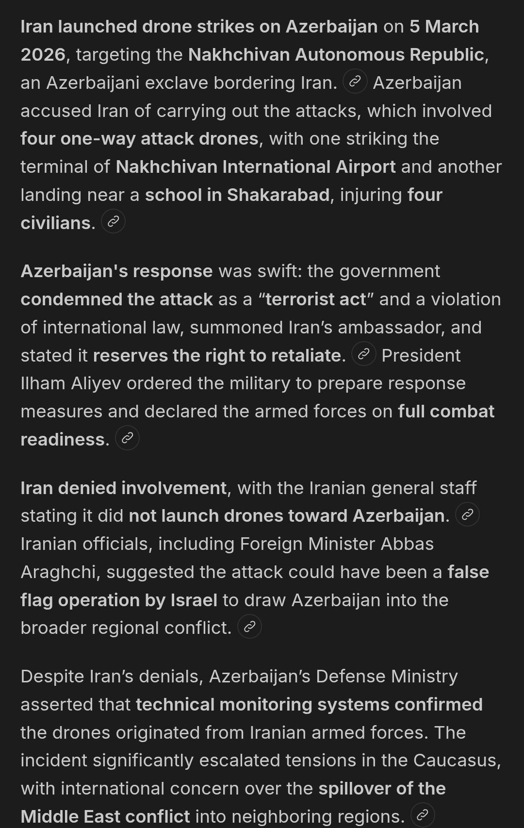 >>531567495I'd believe Iran is serious about regime changing the gulf states if their proxies commit to earnest efforts to uproot pro western governments in region. While it makes for headlines to attack us military bases, embassies and energy infrastructure, I'd imagine they're biding their time remembering the cost inflicted onto them. From Iran POV they have to make the artifical nations (UAE, Bahrain, Kuwait, Qatar) collapse to render then unable to perform ever again against them.
