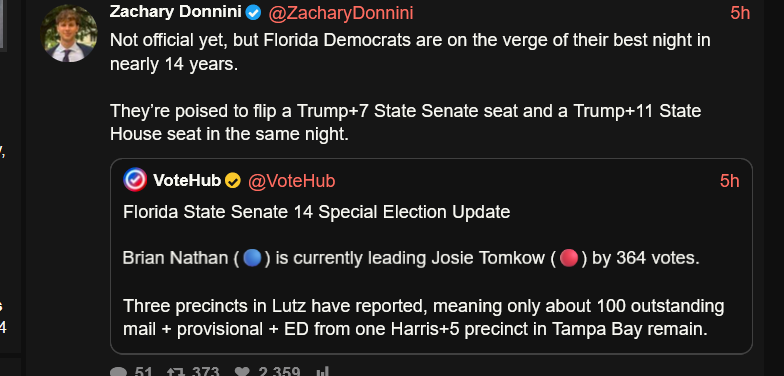 >>531570835>state senate seatstate house and senate races have nothing to do with national politics. very very few people vote in them and they are heavily based on the local reputation of the candidate. democrats are grasping at straws with these special election wins to try to keep hope alive and raise money to even be able to compete in the midterms. their party has completely collapsed.