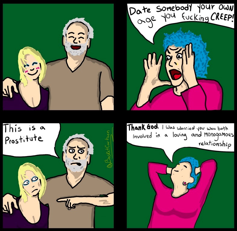 it's just biology, dude. the human race survived because we impregnated women. you don't fuck old women if you want children, it makes no biological sense. not to mention they tend to be more fucked up. men should not be demonized for liking younger women, as long as they're adults, otherwise men will just suffer forever for something they can't change. it's this weird to stupid women thing to be against it. stop. stop making men suffer just because you don't attract them anymore and instead celebrate your old age instead, you don't need men, right? seems like you do need them just to have someone to keep beating down.