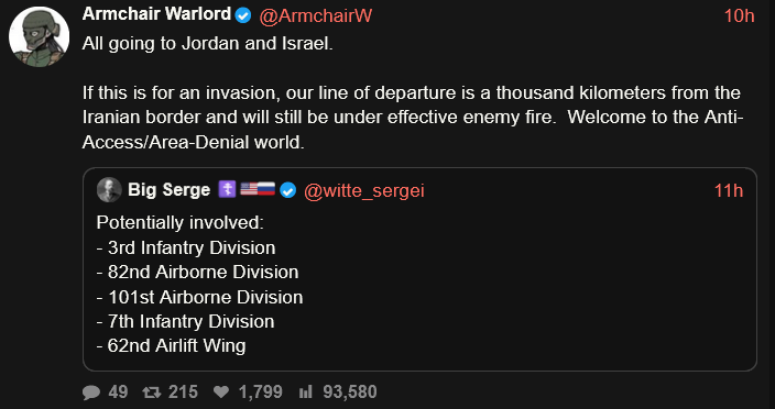Well you see it's a decoy. We don't really care to send in ground troops we're just stalling to see if we can get a solid peace deal in. And when no peace deal is made we're just going to green light Israel dropping a fucking nuclear bomb on Iran. And when everyone bitches about it Israel is going to ask if one nuke was enough and when everyone acts like a pussy about it and says yea 1 was enough. We'll call it a day.