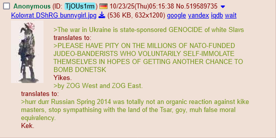 >eglin tranny still not explaining why ukraine is being pulped despite chabad being on their sideNice deflection. Also,>hohols>whiteAnything else?