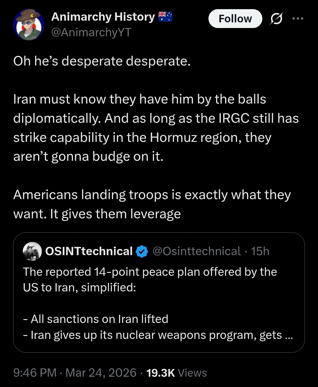 You seem confused. Whatever intel that obvious sellout has been given is up against a wall. I don't think you've yet developed the ability to profile the trajectory of a character like fuente. His history of changing opinions based on current events clearly indicates financial motives (as opposed to moral/values motives). Characteristics of such constituents are extremely common and can't be relied on for anything because truth isn't their trajectory, materialistic avarice is. That should be obvious.