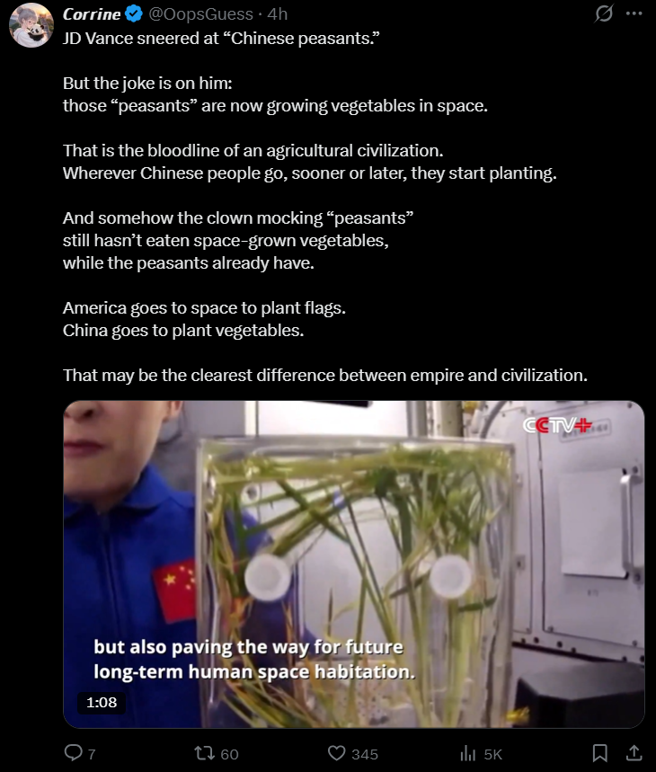 >>531641401Does the person who wrote this not know that we started crop-planting experiments in space back in the 1970s?