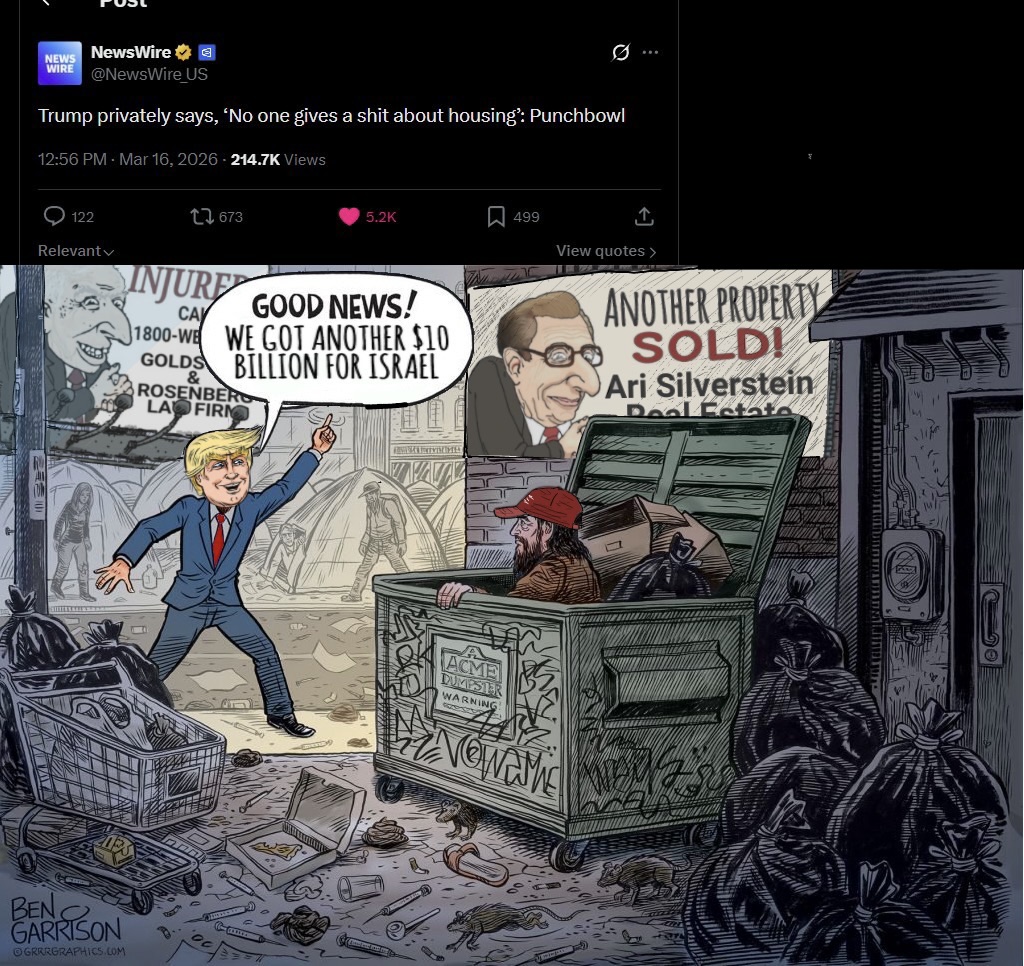 In three weeks of Trump's "special 24-hour op" to overthrow Iran:>Allowed Israel to cuck him in to a war (per Rubio)>Uses it as a convenient way to avoid his pedophilia in the Epstein files>15 *confirmed* dead Americans, over 290 wounded>Unknown numbers of Americans captured>Trump says dead Americans "Is the way it is" and "there will be more">US commander tells troops Trump was 'chosen by Jesus to unleash Iran Armageddon'>Every US base in the Middle East destroyed by Iran's airstrikes>Order the strike that murdered over 150 Iranian schoolgirls>US fighter jets destroyed, at least 2 pilots captured>US reaper drones destroyed>US THAAD missiles almost completely exhausted>Kicks off a massive recession>Allows transgendering children>Backpedals on immigration enforcement>Begs NATO to get involved>Starting to mobilize 5,000 boots on the ground, more dead Americans>Strait of Hormuz closed>US gas prices skyrocketing>US refuelling plane destroyed, more casualties>US Embassy in Baghdad bombed by drones>Trump confirms the war is for gays "We support gays, but they throw gays off the buildings. We have to wipe out the evil">US F-35 destroyed>Deportations under Trump average 900 a day (300,000 a year), Obama deported 3.2 million>US national debt doubles under Trump, $39 trillion>Joe Kent resigns, refuses to be involved in an Israeli war>Trump cucks out and lifts sanctions on Iran oil>US Embassy in Baghdad abandoned>At least 16 US military aircraft destroyed, per Bloomberg >US troop morale rock bottom: "We do not want to die for Israel", per Huffpost>Dementia Trump pretending he's negotiating with Iran, Iran denies any talks>Blatant evidence of Trump insider trading, fucking over small American investors>Trump makes empty threats to the EU>US F-18 destroyed by Iran >Trump approval rating at record low 36%>Four more weeks, goyim!