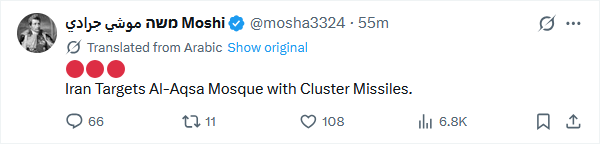 >Multiple explosions heard in Dubai, United Arab Emirates.>Iranian missile launches to central Israel.
