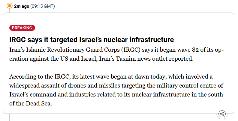 >Iran has threatened to seize the territories of the UAE and Bahrain if the US launches a ground operation.>"If the United States makes a mistake, the Iranian armed forces are ready to seize the coastline of the UAE and Bahrain and change the region," says Iranian state television IRIB.I had speculated that after the war, Iran might move the territorial water lines further south and annex those oil fields.But it seems that they might go for reunification with Bahrain and annexation of UAE coastline (which includes almost all of their oil and gas at sea).Sooner or later, these gulf states will have to pick a side to fight against.And the weakest opponent is the US/Israeli.AD inventories are borderline depleted, and fighter jets have very long flights to just reach the gulf.Iran may be able to pull it off.