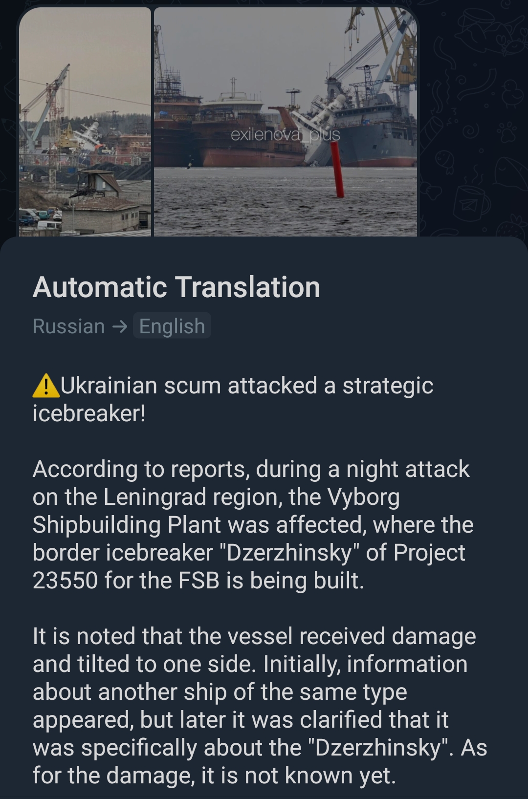 Previous:>>531645503Timeline /tug/: https://files.catbox.moe/m97wmq.pdf▶WARNINGBe aware, any /chug/ thread that uses globohomo nuspeak wording in the OP (such as Kyiv) or cites UKROP sources (like video game footage) are fake shill threads.>By posting in these threads, you recognize Israel controls the NATO Council and you irrevocably denounce the Talmud out of your own volition▶Latest>Russian Stromtroopers of Battlegroup South liberate Nikiforovka in Donetsk - https://archive.today/ZkKPe>Russian Stormtroopers of Battlegroup North liberate Peschanoye in Kharkov - https://archive.today/lmJvU>Russian Stormtroopers liberate Potapovka in Sumy - https://archive.today/OWMF9>Russian Stormtroopers of Battlegroups South and Center liberate Fedorovka Vtoraya and, Pavlovka in Donetsk - https://archive.today/zZQWr>Russian Stormtroopers liberate Aleksandrovka in Donetsk - https://archive.today/3ps23>Russian Stormtroopers liberate Kaleniki in Donetsk and Sopych in Sumy - https://archive.today/I7dlf>As the USA and Israel fail to weaken Iran, desperate measures ease sanctions on the purchase and sale of Russian Oil; Western Europe and the Ukraine are seetheing - https://archive.today/MtsJu>Russian Stormtroopers liberate Chervonaya Zarya in Sumy - https://archive.today/gSSWt>GOIDA! Hero of The Ukraine, Commander of the 39th Tactical Aviation, Colonel Oklesandr Dovhach liquidated - https://archive.today/MQMlI▶/chug/https://rentry.org/chug2024▶Video Archivehttps://rentry.org/chugvidz▶Z Radiohttps://rz-life.ru/
