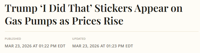 Just saw my first Trump 'I Did That' sticker at the gas station yesterday. People are pissed about paying Trump's 'Iran war tax' every time they fuel up!