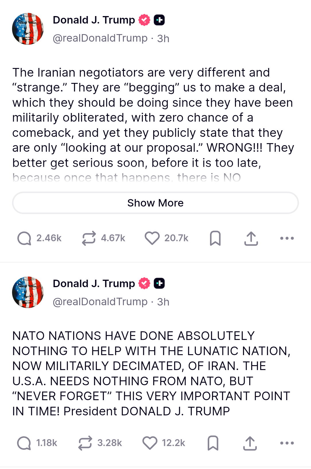 Meanwhile all Trump and Bibi can only ever offer is broken promises and backstabbed alliances while demanding absurd gibs.