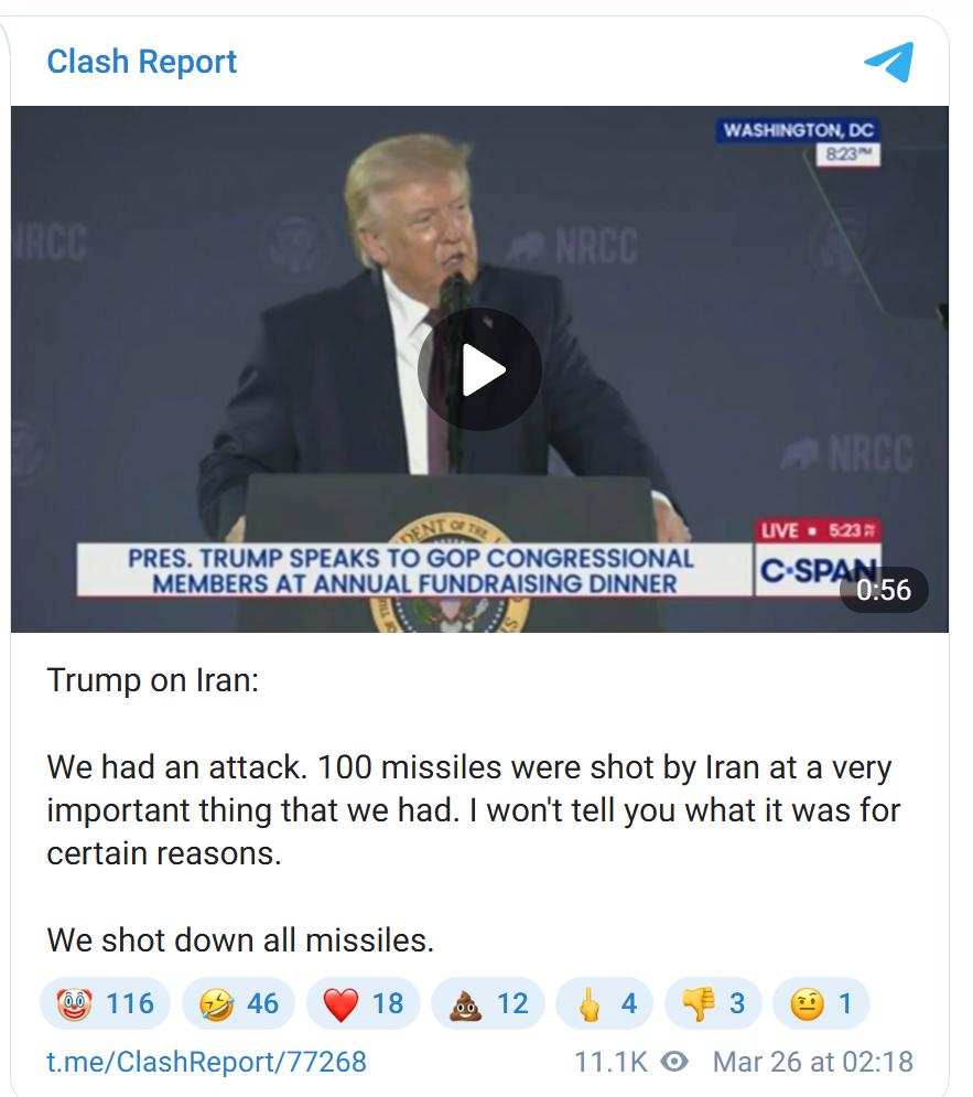Yeah sure, "underground". I will laugh my ass off when muttland goes ahead with their ground operation and reopen the strait. All the alien technology Iran has would still stay underground because that is part of the plan or something lmao.