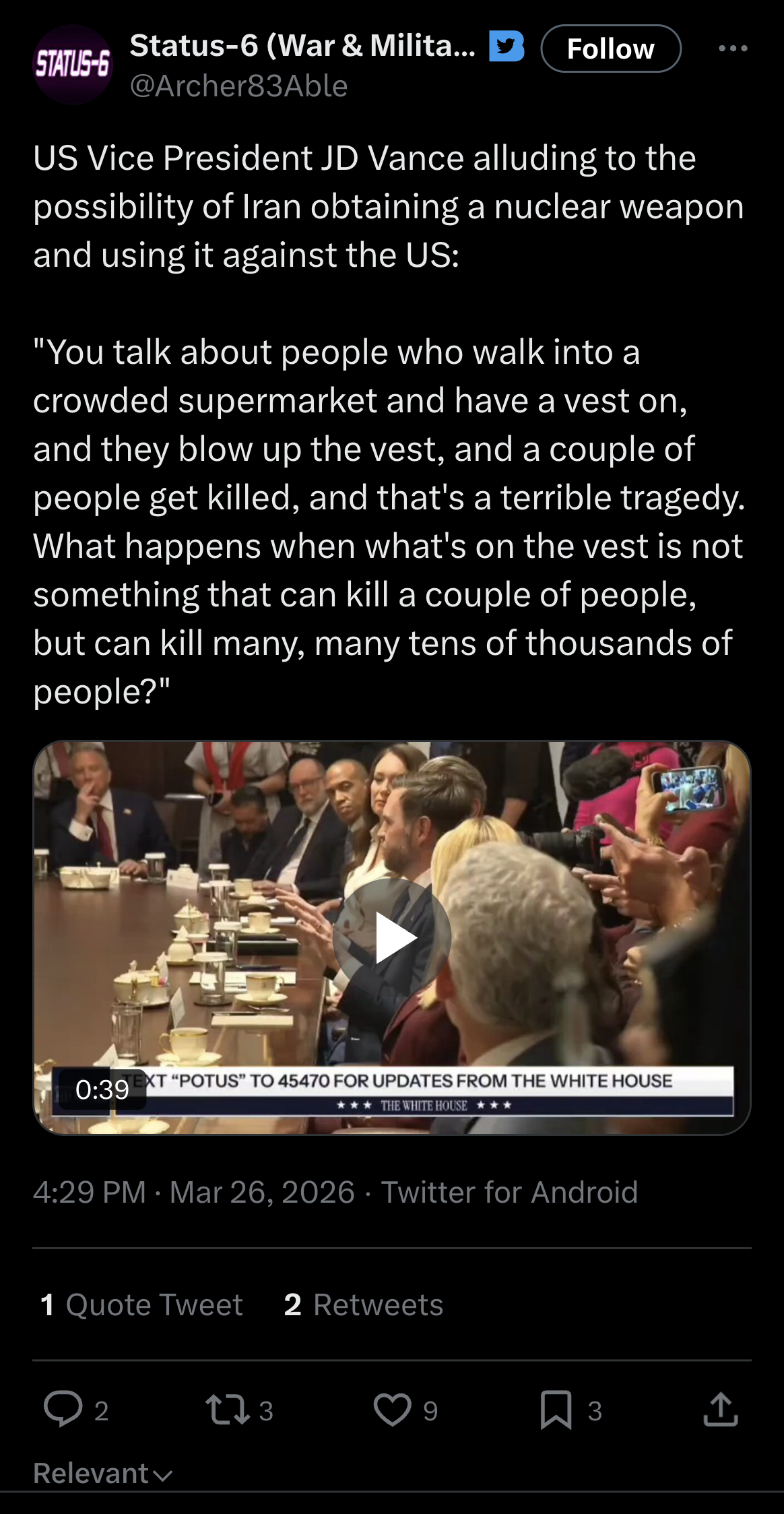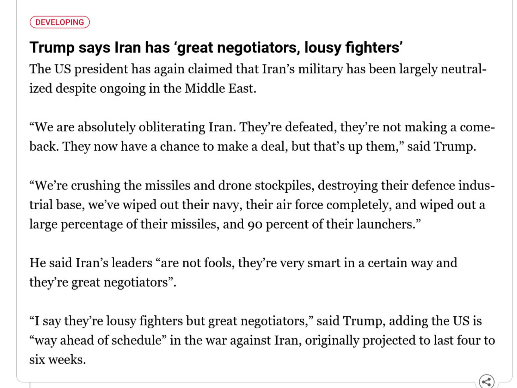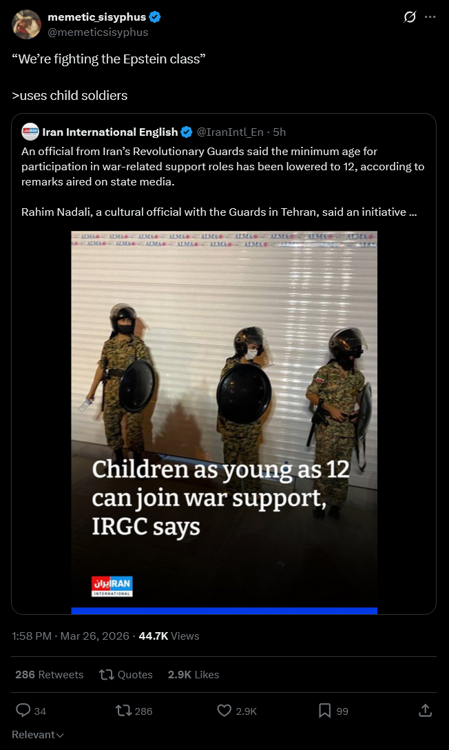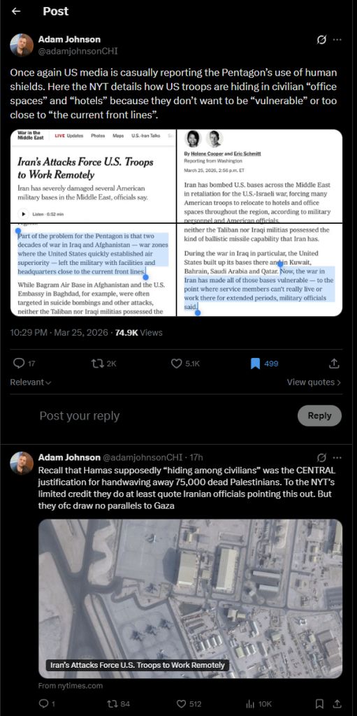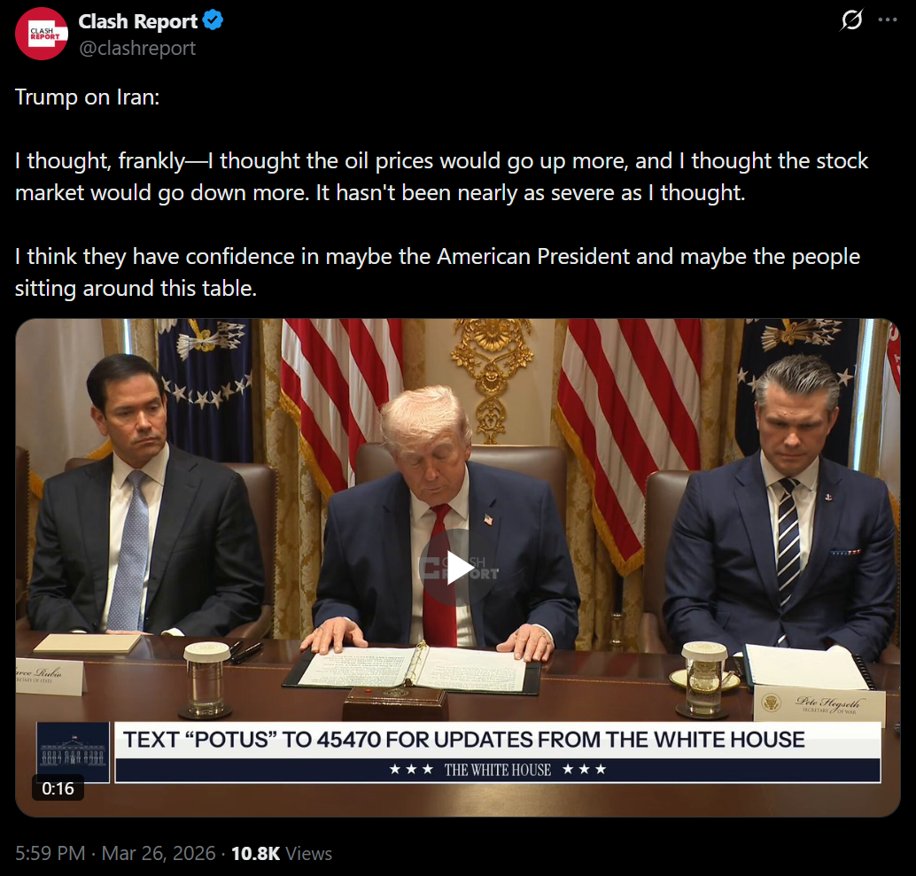 well they reportedly have been increasing defenses in and around kharg for the last week +, their nuclear sites were threatened by special ops on day 1 and are probably ready, and the strait is essentially their top defensive priority already, so it’s debatable how much these threats are “dragging them deeper” into anything other than favorable defensive positions