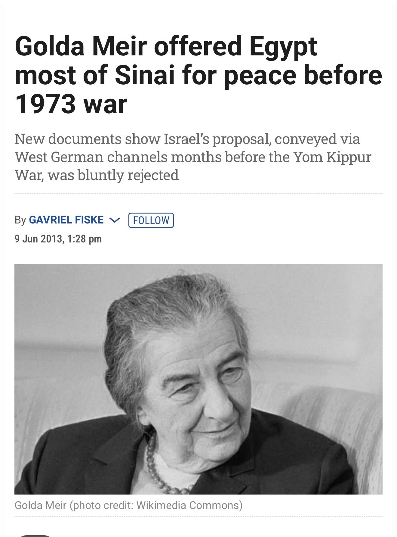 we offered you sinai for peace months before the war