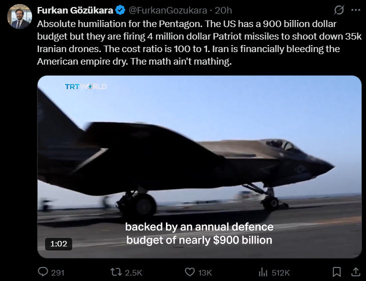 >>531681360We aren't shooting Patriots at Shaheds because we would be completely out of Patriot missiles already if we were. This isn't to say a Patriot has never be used vs. a Shahed because obviously if that was the only option you'd do it. But the report I am seeing says we've used 500 out of an initial stockpile of 2,000 so if we were wasting them on Shaheds we'd be totally out by now. Our Arab pals have been doing some some Patriots vs. Shahed stuff because they are 85 IQ but the US and Israel are using appropriate interceptors for the threat. with Patriots going against against ballistic and cruise missiles like they are supposed to. So these brown copes of America being retarded and not knowing how to manage our resources is just wishful thinking from losers who are losing.