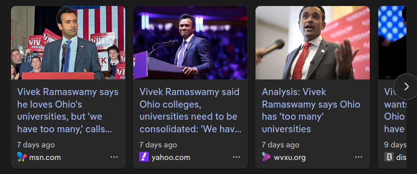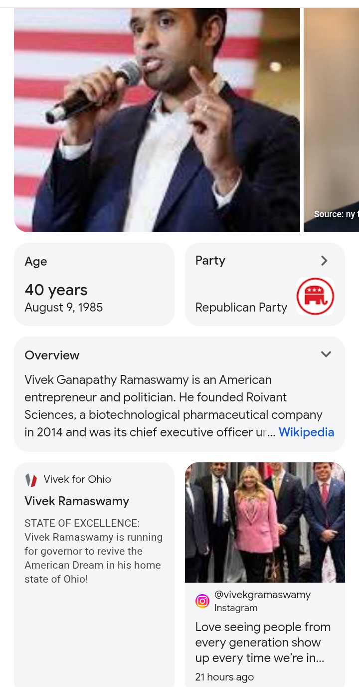 >>531681022Meanwhile, Vivek Ganapathy Ramaswamy, the future Face of MAGA is only 40, so he's got 40 more years. Right now he's plotting to become Governor of a Top7 American state. Election is only half a year away
