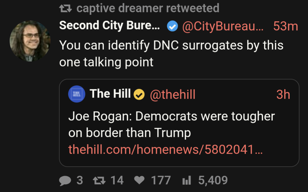 >>531683177i think theo von is still mostly with trump. joe rogan was always a democrat he just didn't like the tranny stuff. fuck him, nobody watches that shit anymore