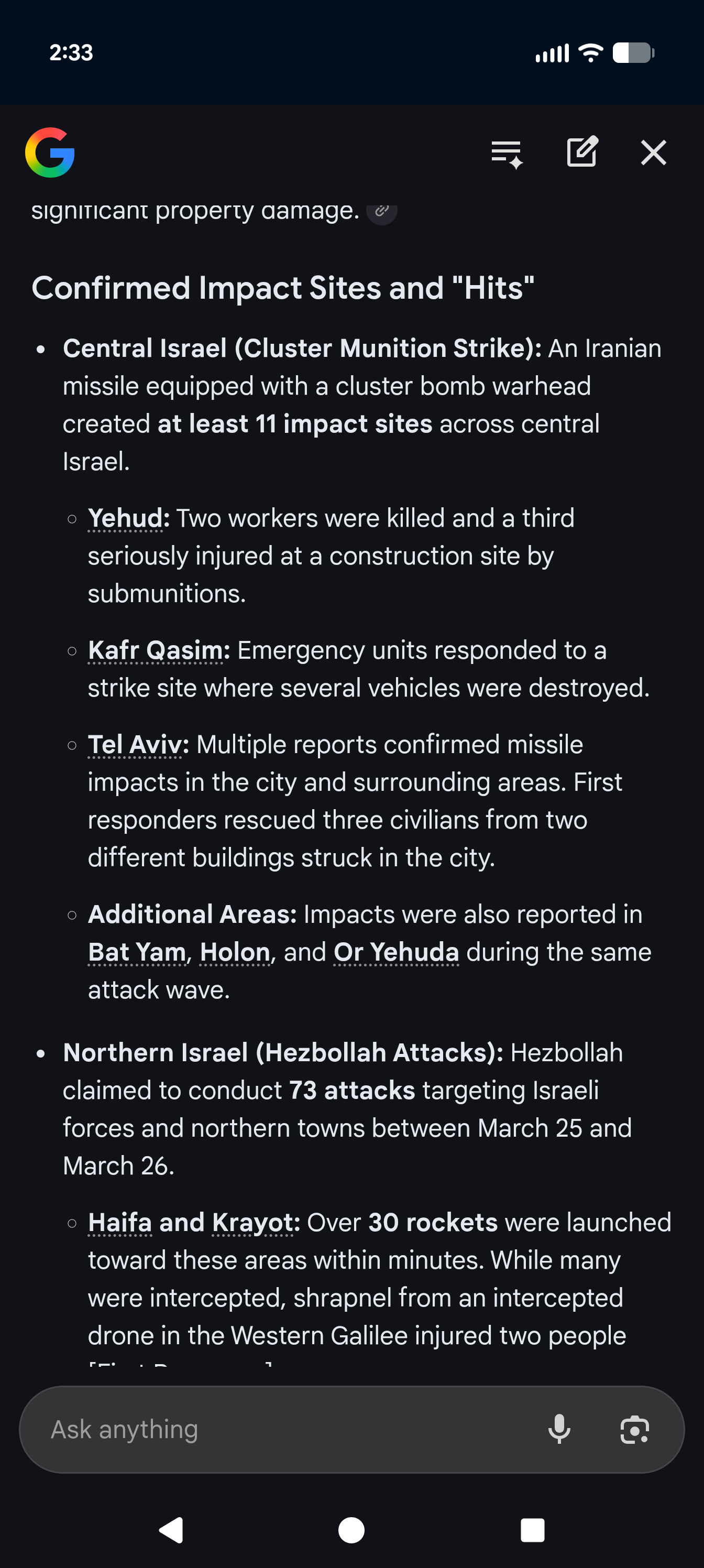 tel aviv footage this night apparently, submunition warhead https://xcancel.com/DropSiteNews/status/2037412947249582587#m